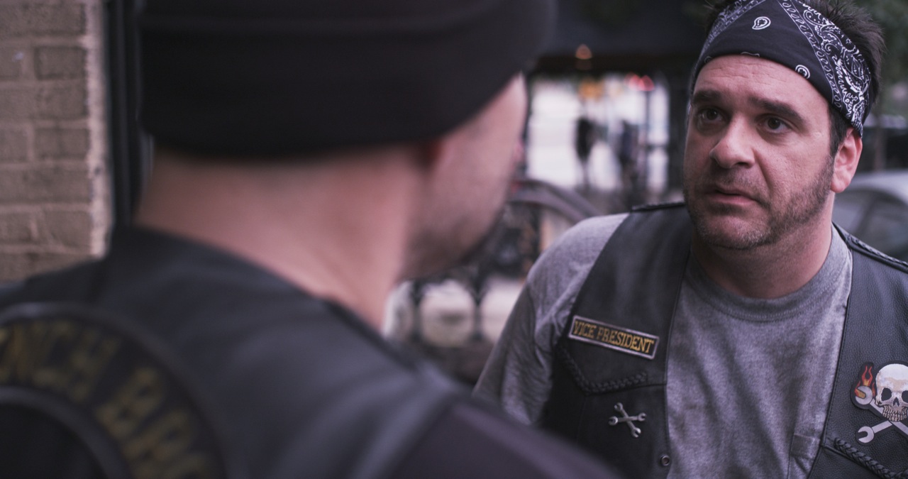 MIKE PETITO (George Pogatsia), a family man and biker, and his wife YVETTE (Karina Arroyave) witness the house next door being burglarized. Mike calls 9-1-1 and describes the scene. When Mike sees the burglars abducting his female neighbor he takes matters into his own hands. He grabs his gun and confronts them. The face-off results in Mike shooting them both.